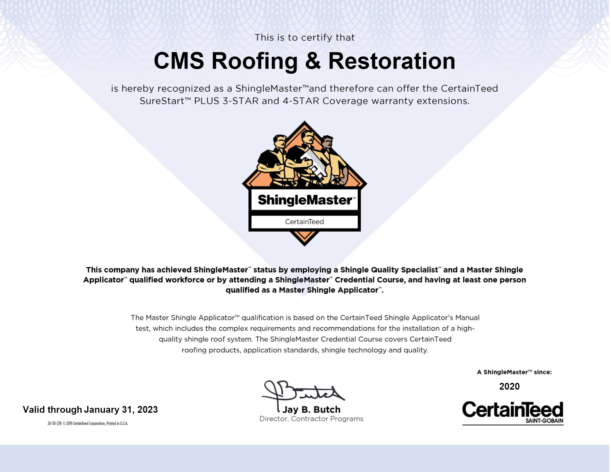 At CMS Roofing and Restoration, our mission is to provide homeowners and commercial property owners with exceptional roofing, siding, gutters, windows, and solar roofing solutions that protect, restore, and enhance the integrity of their properties. Since 2012, we have been committed to delivering reliable, high-quality craftsmanship with over a decade of expertise. Our focus is on offering sustainable, energy-efficient upgrades and trusted restoration services that ensure long-term safety, durability, and value for every client we serve.