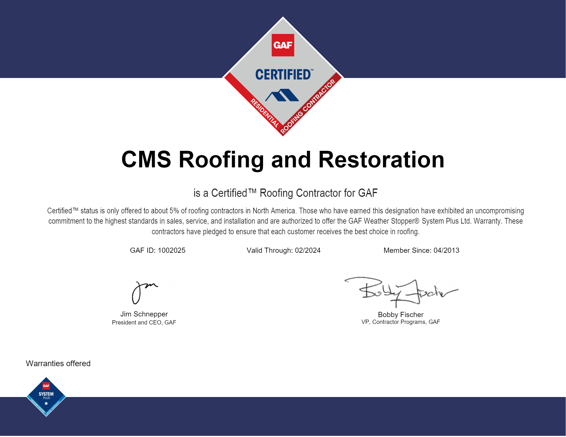 Our partnerships, experience and satisfied customers are the reason you should contact CMS Roofing & Restoration for your next home or business project.